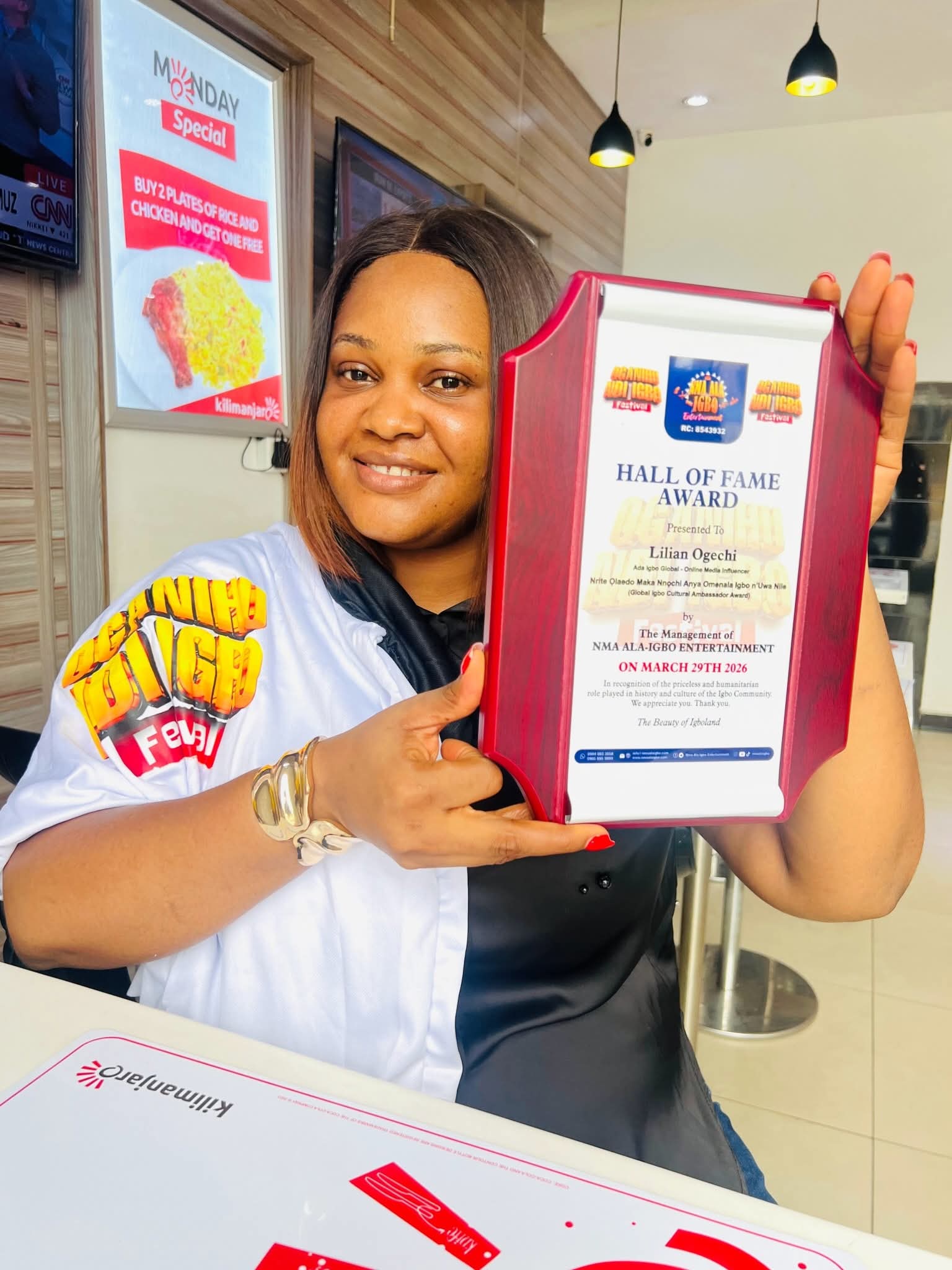 The award, presented by Nma Alaigbo’s management, recognises her impact through Adaigbo Global, a growing platform she uses to document traditions, share heritage stories, and mobilise a large audience around Igbo identity and cultural awareness. The platform has become a reference point for cultural conversations and community engagement.