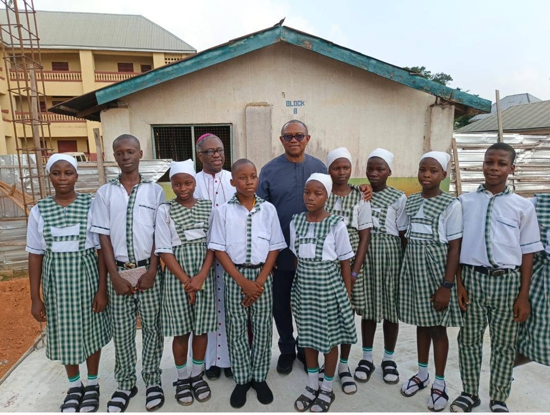 ADC chieftain Peter Obi yesterday joined the Papal Nuncio, Archbishop Jude Thaddeus Okolo, to lay the foundation stone for the Sacred Heart Primary and Secondary School in Ozubulu.