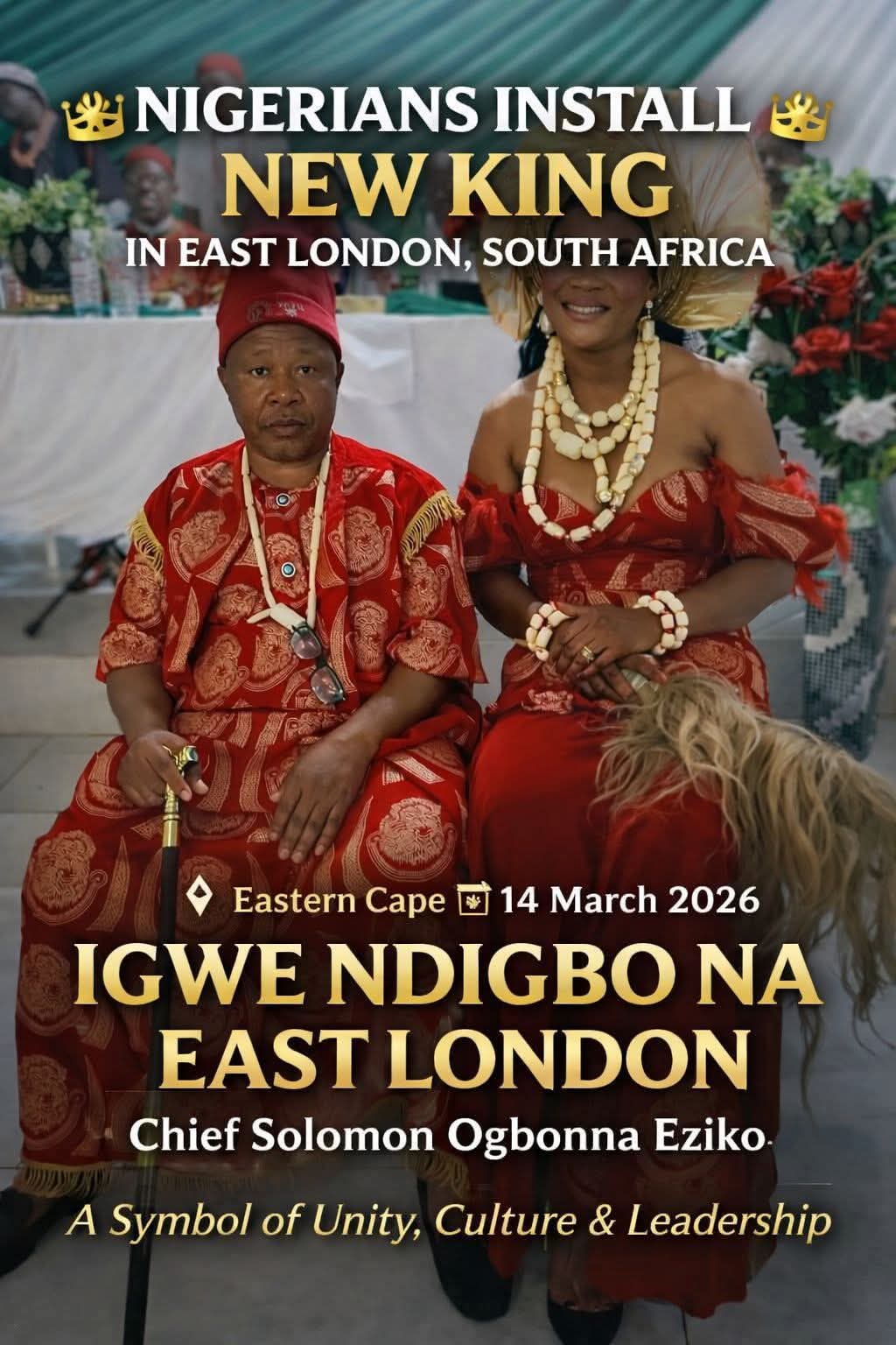 The controversy follows reports that Solomon Ogbonna Eziko was installed as “Igwe Ndigbo” during a ceremony in the kuGompo area. However, the Eastern Cape House of Traditional and Khoi-San Leaders distanced itself from the event, stating it undermines legally recognised traditional governance systems.